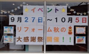 ハピアスリフォーム 中津ショールームでは、本日より10月5日までの期間、