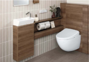 便器の後ろや手洗い器の下のスペースを、収納として有効活用できる設計になっています。