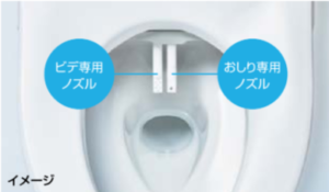 LIXILならではの特徴として、ノズルが2本搭載されています。