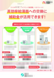この制度を活用すれば、エコキュートなどの高効率給湯器へ交換する際に補助金を受けることができ、費用負担を抑えながら省エネ化が可能になります。