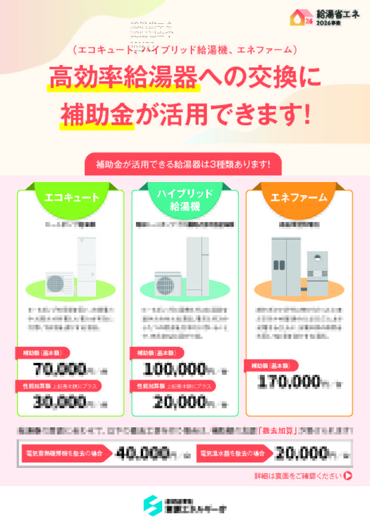 給湯省エネ2026事業を活用すれば、費用を抑えながら交換できるチャンスです。