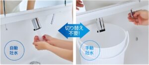 花瓶の水くみなどの連続吐水をされたいときには、ハンドル操作で手動吐水もできます。