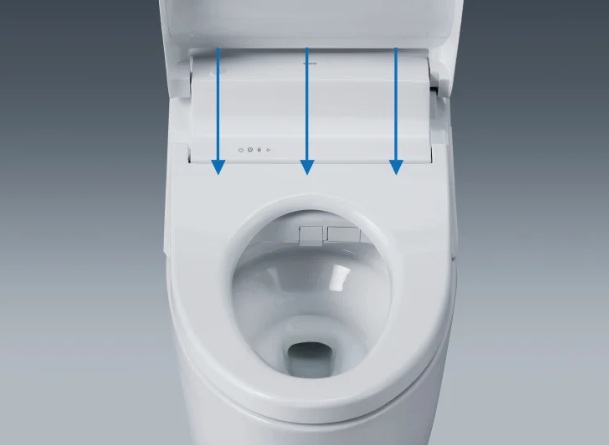 新発売のGGAシリーズです。従来のタンク一体型トイレはお湯を貯めておく「貯湯式」でしたが、GGAは使用する時だけお湯を作る「瞬間式」にアップグレード!節電なのに湯切れなしで省エネ仕様です。さらに空間に調和するスタンダードなデザインに進化。タンクが隠されているとは思えない、タンクレスのようなフラットな見た目になりました。