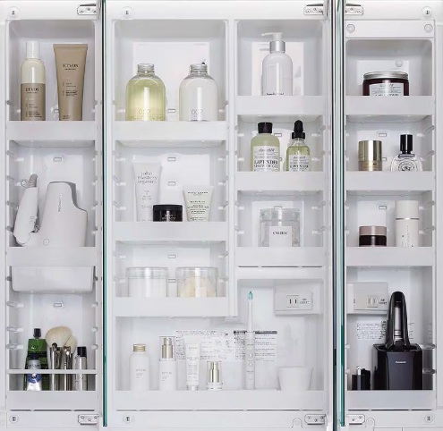 トレイ奥行きが125mmでこれまで収納するのが難しかった大きなドライヤーやシェーバーが収納可能になりました。トレイの高さはお好みに合わせて調節できます。