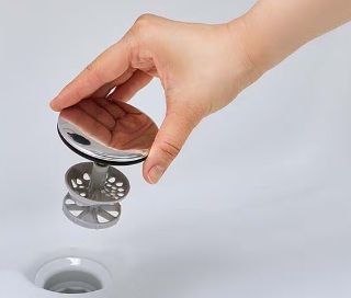 ヘアキャッチャーは着脱式。排水口の中までスポンジでサッとお掃除できます。水を通しやすい大口径φ55の排水口です。